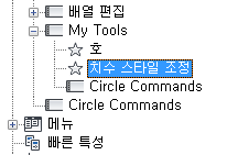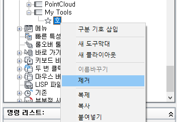 명령 리스트 창에 도구막대 조정 요소의 리스트만 표시됩니다.