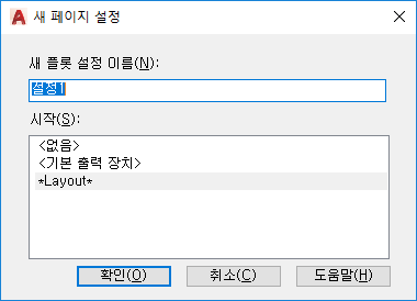 새 페이지 설정의 이름과 함께 시작점으로 사용할 페이지 설정을 지정합니다.