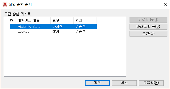 동적 블록 참조에 대한 순환 순서에서 선택된 그립을 위로 이동합니다.