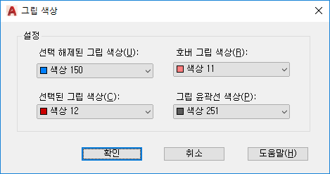 선택되지 않은 그립 위에서 커서가 잠깐 멈추는 경우 이 그립의 채우기 색상을 조정합니다.