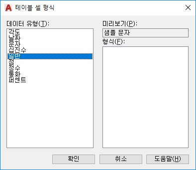 선택한 데이터 형식에 따라 관련 형식 유형의 리스트를 표시합니다. 예를 들어, 각도를 데이터 형식으로 선택한 경우에 형식은 십진 도수, 그래드, 라디안 등의 옵션이 표시됩니다.