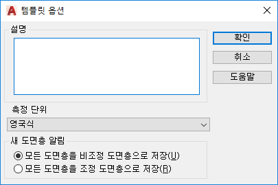 도면 템플릿에 대한 설명을 지정합니다. 이 설명은 시작 대화상자나 새 도면 작성 대화상자에서 템플릿을 선택하면 표시됩니다.