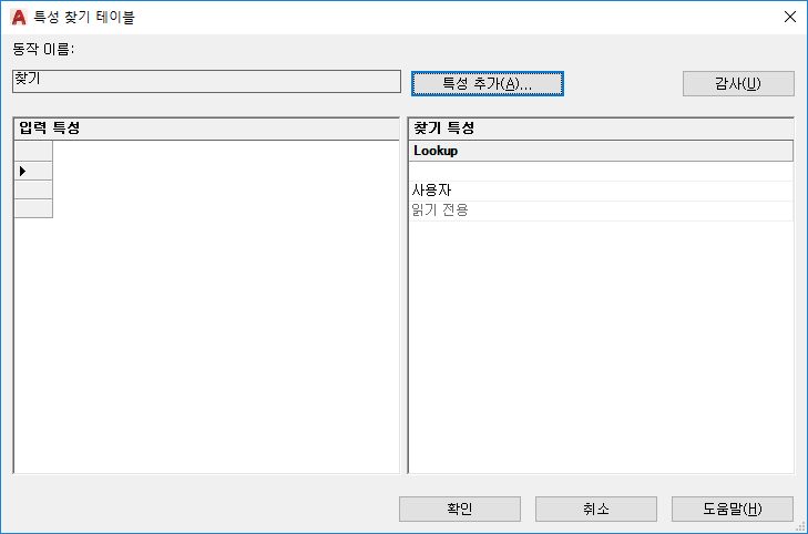 동적 블록 정의 내에서 사용자 특성에 대한 찾기 테이블을 작성 및 수정합니다.