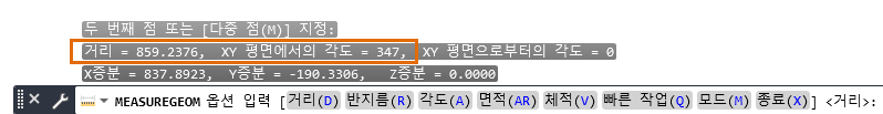 측정값이 명령 윈도우에 표시됩니다. 필요에 따라 F2 키를 눌러 명령 윈도우를 확대합니다.