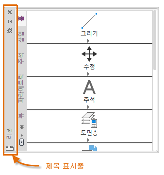 제목 표시줄을 클릭하고 고정해제된 리본을 도면 영역의 왼쪽 모서리, 오른쪽 모서리 또는 맨 위로 끕니다.