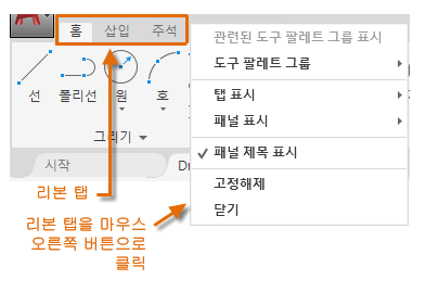 리본 탭을 마우스 오른쪽 버튼으로 클릭하고