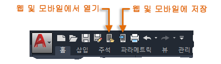 원격 위치에서 도면에 액세스해야 하는 경우 웹 및 모바일에 저장 및 웹 및 모바일에서 열기 명령을 사용해 보십시오.