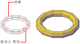 DIVMESHTORUSPATH 및 DIVMESHTORUSSECTION 시스템 변수를 사용하여 메쉬 토러스의 기본 분할 수를 설정합니다.