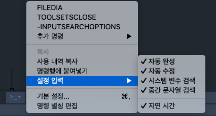 명령행 메뉴에서 이러한 옵션의 설정을 변경할 수 있습니다.