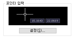 포인터(커서) 입력이 켜진 상태에서 명령이 진행 중이면 커서 근처의 툴팁 입력 상자에 십자선의 좌표 위치가 표시됩니다. 명령행 대신 툴팁에 좌표를 입력할 수 있습니다.