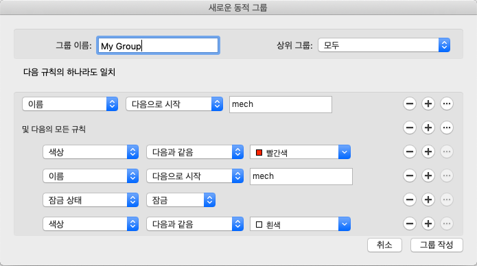 - 논리적 AND 규칙을 사용하여 그룹화하려면