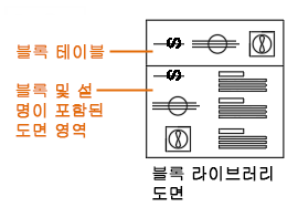 같은 도면 파일에서 블록을 작성하여 연관된 블록 정의 세트를 구성할 수 있습니다. 이때 사용되는 도면 파일을 블록 라이브러리 또는 기호 라이브러리라고 합니다. 이러한 블록 정의는 도면에 개별적으로 삽입할 수 있습니다. 블록 라이브러리 도면은 사용 방법을 제외하고는 다른 도면 파일과 같습니다.