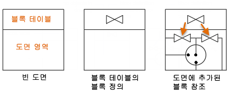 블록을 삽입할 때 블록 참조를 삽입할 수 있습니다. 블록 정의의 정보가 도면 영역으로 복사되는 것이 아니라, 블록 참조와 블록 정의 간에 링크가 설정되는 것입니다. 따라서 블록 정의가 변경되면 모든 참조가 자동으로 업데이트됩니다.