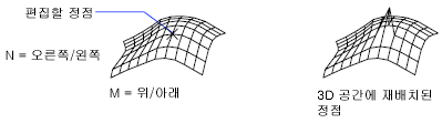 폴리곤 메쉬가 현재 M 또는 N 방향에서 닫혀 있는 경우 Mclose와 Nclose가 Mopen과 Nopen으로 대치됩니다.