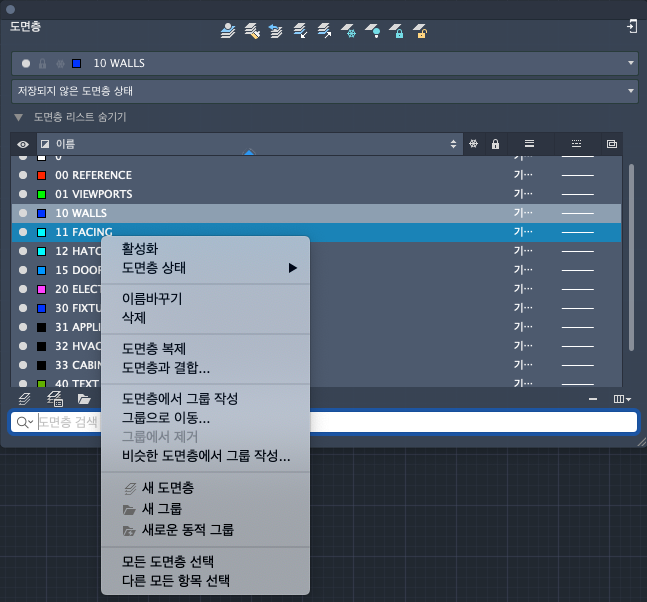 - 선택한 도면층 그룹에서 도면층을 모두 선택합니다.