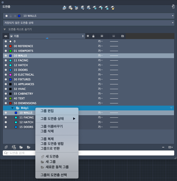 - 새 도면층 그룹을 작성하고 선택한 도면층을 도면층 그룹의 참조로 추가합니다.