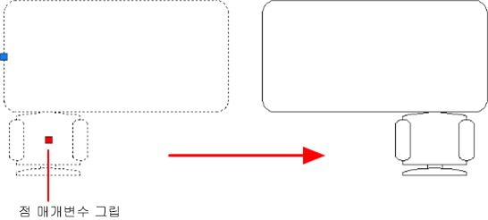 사용자 그립을 사용해 동작 매개변수가 포함된 블록을 처리할 수 있습니다. 예를 들어, 블록 참조의 의자 위에서 그립을 끌면 의자가 움직입니다.