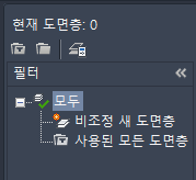 비조정 새 도면층 필터는 도면층 알림 기능이 켜지고 이후에 새 도면층이 작성되거나 생성될 때 자동으로 작성됩니다.