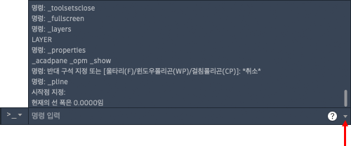 별도의 창을 열지 않고 확장된 명령 사용 내역을 표시할 수도 있습니다. F2 키를 누르거나 명령행 오른쪽 끝에 제공되는 컨트롤을 사용하여 확장된 명령 사용 내역을 볼 수 있습니다.