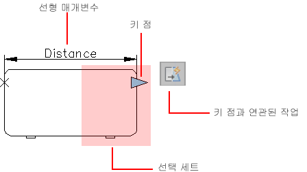블록 정의에서 동작 및 매개변수는 블록이 도면에 삽입되면 해당 블록의 동작에 대한 규칙을 제공합니다.