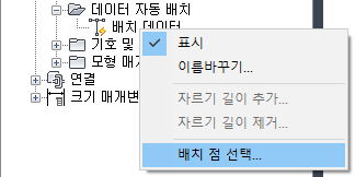 배치 데이터의 배치 점 선택 상황에 맞는 메뉴