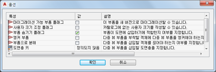 설정에 대한 설명은 파라메트릭 부품의 부품 삽입 동작을 참고하십시오.
