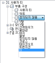 부품 유형을 지정하려면 부품 구성 아래에서 정의되지 않음을 마우스 오른쪽 버튼으로 클릭하고 편집을 클릭한 다음 티를 선택합니다.