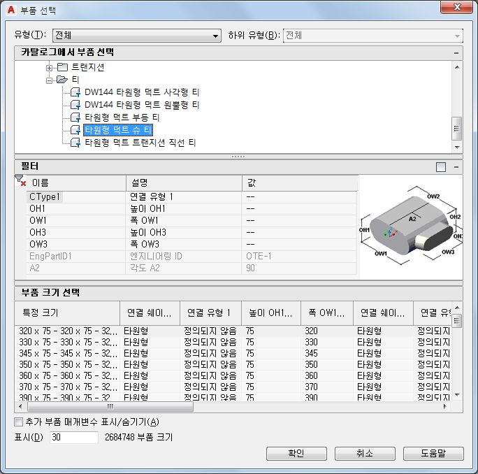 부품 선택 대화상자