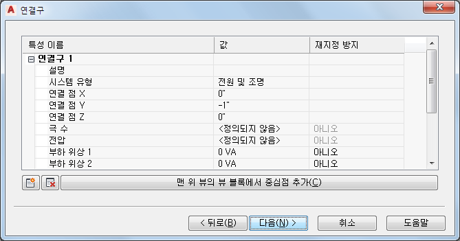 | 연결구의 회로 유형 지정 | 시스템 유형으로 하나의 시스템 유형을 선택합니다. 주: 전원 및 조명을 선택하면 전압 및 부하와 같은 추가 연결구 특성을 구성할 수 있습니다.