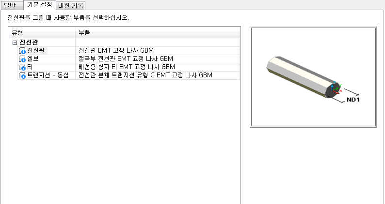 • 스타일 검색기 팔레트의객체 유형 전기 객체 전선관 부품 라우팅 기본 설정