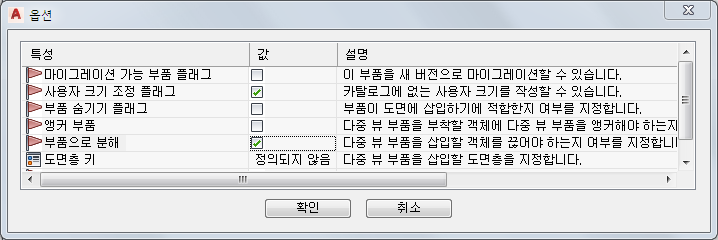 파라메트릭 다중 뷰 부품에 대한 옵션 대화상자