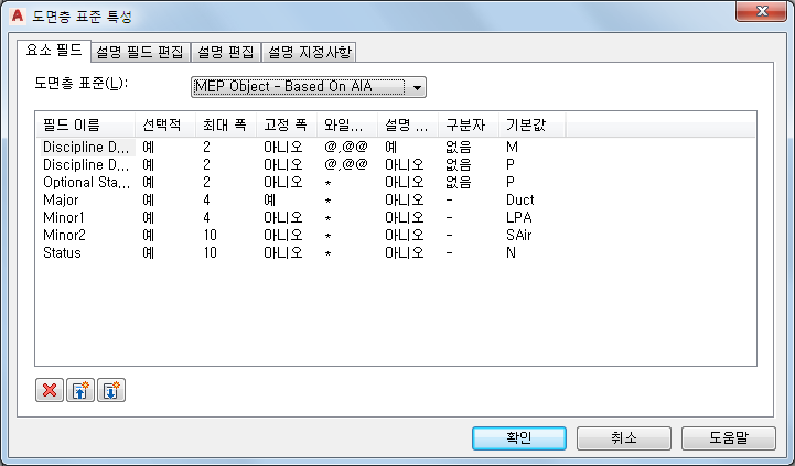 이 소프트웨어에서는 MEP 객체 - AIA(미국 건축가 협회) 기반, BS1192 - AUG 버전 2와 같은 산업 표준 도면층 규칙을 기반으로 여러 가지 기본 도면층 표준을 제공합니다. 도면층 표준을 기준으로 도면층을 작성하는 경우 도면층의 이름에는 하이픈과 같은 분리자로 구분된 여러 부분이 포함됩니다. 이름의 각 부분은 도면층 표준 정의에서 설정한 규칙에 따라 결정됩니다. AutoCAD MEP toolset의 기본 도면층 표준 정의는 일반적인 업계 도면층 표준을 기반으로 합니다. 예를 들어, MEP 객체 도면층 표준에 따르면 덕트의 도면층 이름은 M-Duct-Std입니다.