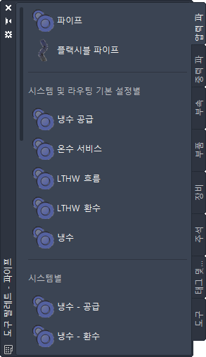객체 도구는 덕트나 파이프와 같은 객체를 도면에 삽입합니다. 특정 객체 도구를 사용하여 객체를 추가하면 객체에 도구에서 정의된 설정이 적용되며, 이를 통해 설계 프로세스를 쉽게 수행하고 사용하는 프로젝트 도면 전체에서 일관성을 유지할 수 있습니다.