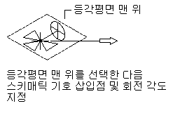등각투영 모드에서 스키매틱 기호를 추가하려면