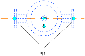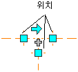 위치 그립을 사용하여 현재 XY 평면에서 위생 구성요소를 이동할 수 있습니다. 위치 그립은 부품의 삽입점과 연결구 점에 나타납니다.