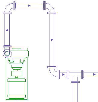 흐름 방향은 재료 또는 유체(예: 공기 또는 급수)가 시스템 구성요소를 통해 앞으로 이동하는 것을 말합니다. 두 분기 사이의 덕트 런 또는 파이프 런의 흐름 방향을 설정하거나 반전시킬 수 있습니다. 흐름 방향을 설정하면 흐름 표식기를 사용하여 필요에 따라 표식기를 설정 또는 해제하면서 흐름 방향을 표시할 수 있습니다. 흐름 표식기는 세그먼트의 중간점에 표시되는 솔리드 2D 화살표입니다.