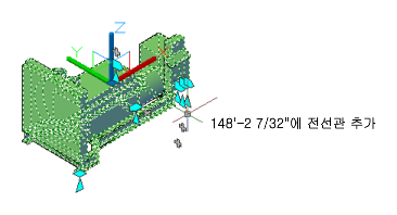 방향을 바꾸면 휨 반지름 값이 자동으로 계산되게 하는 방식으로 평행 전선관 런을 그릴 수 있습니다. 다음 절차를 사용하여 전선관 시스템에 대한 평행 라우팅을 그립니다.