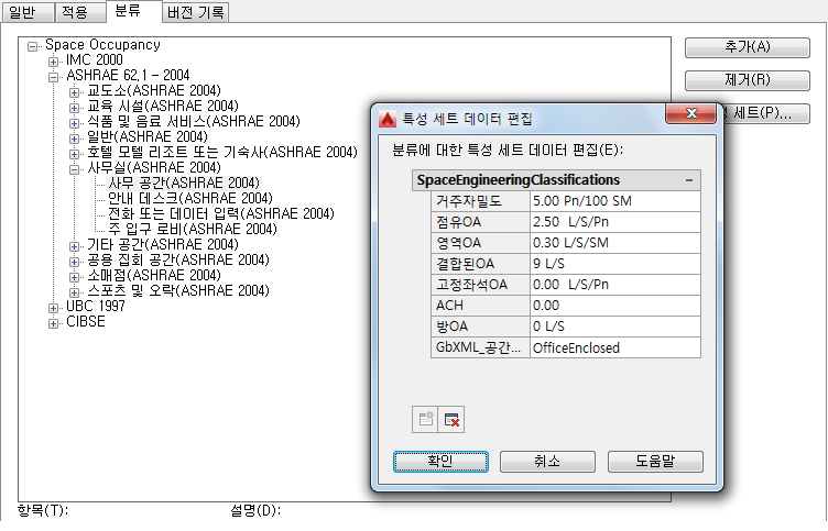 특성 세트 데이터 편집 대화상자에 분류 값이 표시됩니다.