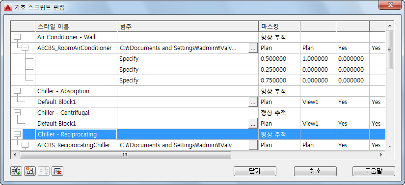 스크립트의 소스 블록 특성은 탭에 표시되지 않습니다. 스타일 관리자를 사용하여 스타일 뷰를 작성할 때는 현재 도면의 블록만 선택하도록 제한되기 때문에 소스 AutoCAD 블록이 포함된 도면의 파일 경로를 지정하지 않습니다.