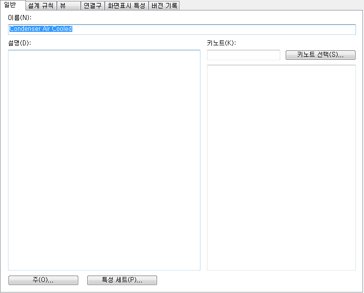 이 대화상자에 표시된 설정은 테이블에서 스키매틱 기호 스타일, 뷰 또는 연결구를 선택하는지에 따라 변경됩니다. 예를 들어, 다음 이미지에서 선택한 객체에 따라 제목 이름이 달라지는 것을 확인합니다.