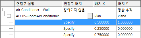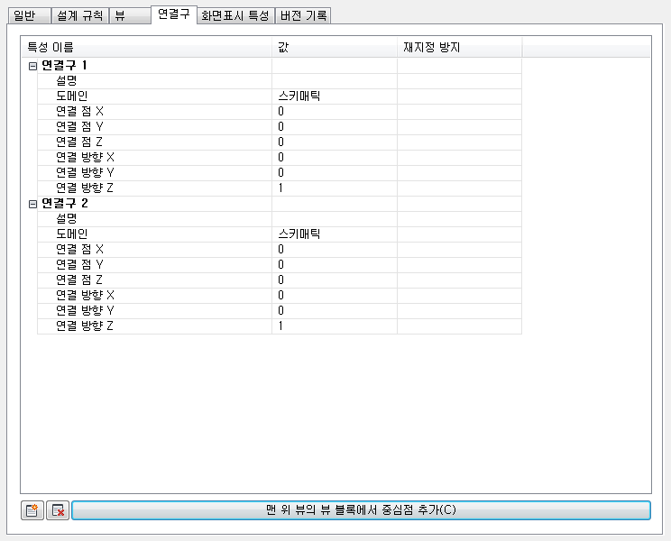 스크립트의 연결구 배치 특성은 탭에 표시되지 않습니다. 스타일 관리자에서는 X, Y, Z 좌표를 입력하거나 이미지에 표시된 옵션을 사용하여 블록의 중심에 연결구를 배치하여 연결구 위치만 지정할 수 있습니다.