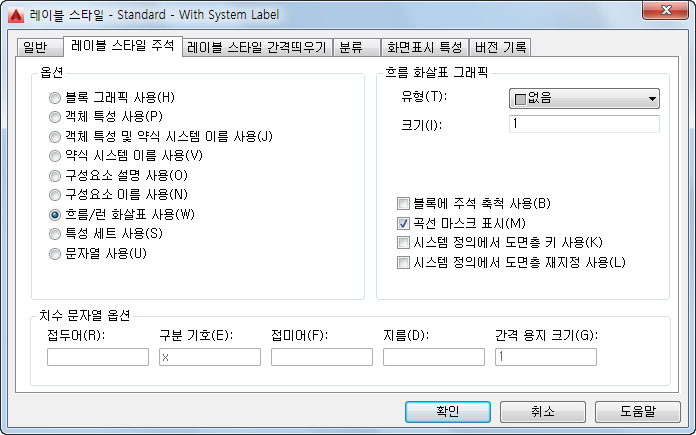 레이블 스타일 주석 탭의 옵션을 사용하여 객체 정보가 레이블에 표시되는 방식을 지정할 수 있습니다.