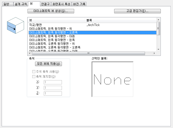 일반적으로 뷰 블록을 생성할 때 뷰 블록을 표시할 화면표시 표현 및 뷰 방향이 구성되지만 뷰 대화상자를 사용하여 이러한 설정을 지정할 수도 있습니다.