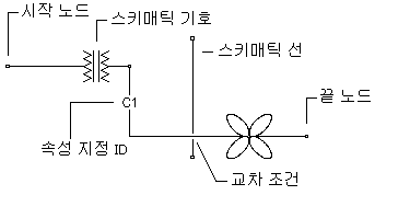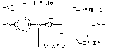 스키매틱 기호에 스키매틱 선 연결