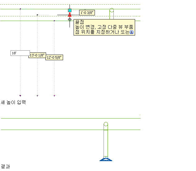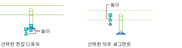 다음 그림에서는 덕트 세그먼트의 입면 변경을 보여 줍니다.