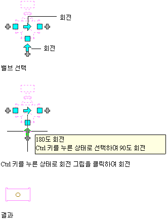 평면도에서 3방향 밸브를 90도 회전