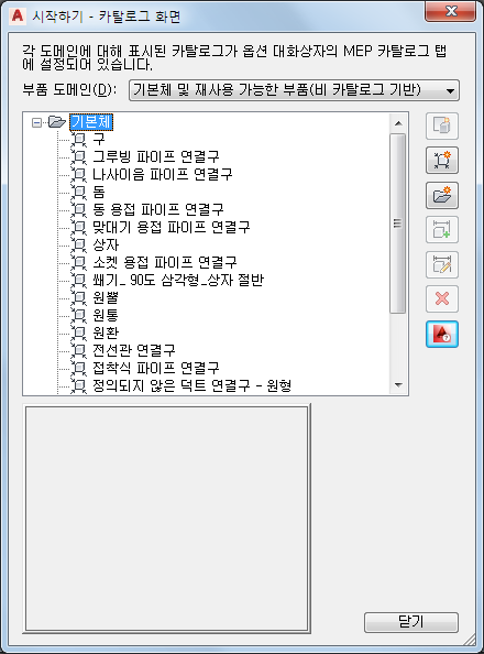 기본체에 대한 시작하기 - 카탈로그 화면 대화상자