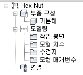 컨텐츠 작성기 환경이 표시됩니다. 기본체에는 부품에 있는 부품 구성 정보나 크기 매개변수와 같은 많은 모델링 기능이 없으므로 모델링 기능의 일부만 사용할 수 있습니다.
