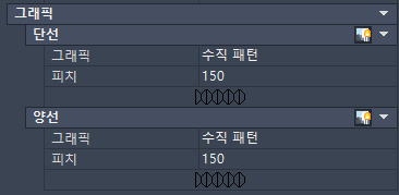 | **그래픽 | 플랙시블 덕트의 패턴을 지정합니다. 주: 자세한 내용은 플랙시블 덕트 그리기를 참고하십시오.