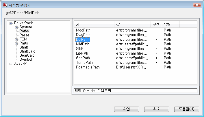 시스템 편집기 대화상자(AutoCAD Mechanical Toolset)